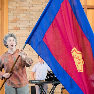 I couldnt make it down the steps with the flag so I called a "volunteer" and tried to get everyone moving. I feel strongly that in some ways it is my job to lead my church community in their attitude to this change, to show optimism and expectation for the future.